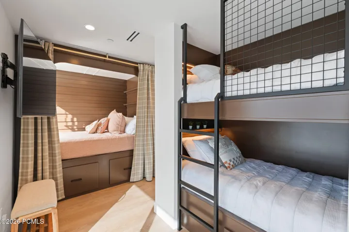 Exceptional duplex at 301 & 303, featuring spacious layouts designed to comfortably accommodate up to 18 guests per unit, making it ideal for personal use, investment, or nightly rental. Each side of the property features 4 generously sized bedrooms, each equipped with its own Smart TV, along with 4 bathrooms showcasing modern fixtures and luxury finishes, plus an additional half bath for guests. A private heated garage fits up to two mid-size vehicles and includes electric vehicle chargers and convenient ski storage amenities. Enjoy year-round comfort with high-speed WiFi, a private hot tub, cozy gas fireplace, and a well-appointed kitchen with dual ovens-perfect for entertaining larger groups. The living room is anchored by an impressive 100-inch Samsung Smart TV with guest login capability, while every bedroom also includes Smart TV access. Ideally located with easy access to Town Lift and Main Street, this property offers stunning views of Park City’s Main Street and nearby ski runs including Quit ‘N Time and Bonanza Access. Four private balconies with seating areas provide inviting outdoor spaces to relax and take in the mountain scenery. Pet-friendly (with restrictions and fees). A rare opportunity to own a highly functional, amenity-rich property in one of Park City’s most desirable locations. Square footage figures are provided as a courtesy estimate only and were obtained from an appraisal sketch by a licensed appraiser. Buyer is advised to obtain an independent measurement.
