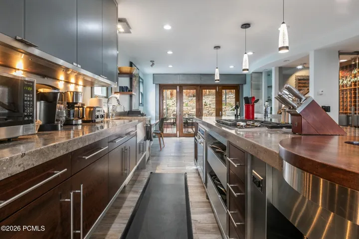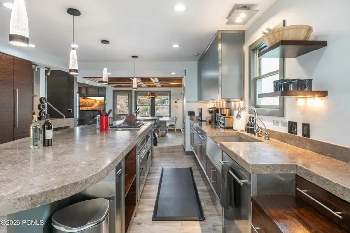 A rare opportunity in Old Town’s coveted ”Gold Coast,” this historic residence has been transformed into a refined modern retreat, where timeless character meets sophisticated contemporary finishes. A dramatic wall of sliding glass doors invites seamless open concept indoor-outdoor living, opening to a private backyard sanctuary complete with a relaxing hot tub.The ski trail access to Town Lift is approximately 960 feet away, about a 4-minute walk, while Main Street is only a couple minutes from the home. Enjoy exceptional access to Park City’s dining, skiing, hiking, and shopping in minutes.The homes’s elegant chef’s kitchen is both functional and striking, featuring a 600-bottle wine cellar, Wolf and Sub-Zero appliances, a hidden pantry, and extensive built-ins. A stunning wood coffered ceiling defines the dining area, creating an intimate gathering space while maintaining an open-concept feel. The living room is anchored by a sleek custom gas fire feature, adding warmth and ambiance on winter evenings.The lower-level entry offers a well-appointed mudroom, a recreation/game area and a bedroom with nearby bath. Thoughtful mountain-living conveniences include a heated driveway and roof heat tape for effortless winter maintenance.Ideally located just moments from skiing at Park City Mountain, miles of hiking and biking trails, and direct access to Historic Main Street via the 2nd Street stairs, this home delivers the perfect blend of luxury, location, and lifestyle.Not only has this property been featured in ‘Dwell Magazine’, but also the 2023 Park City episode of ”Staycation”, highlighting the best and most avant-garde vacation rentals throughout the world.